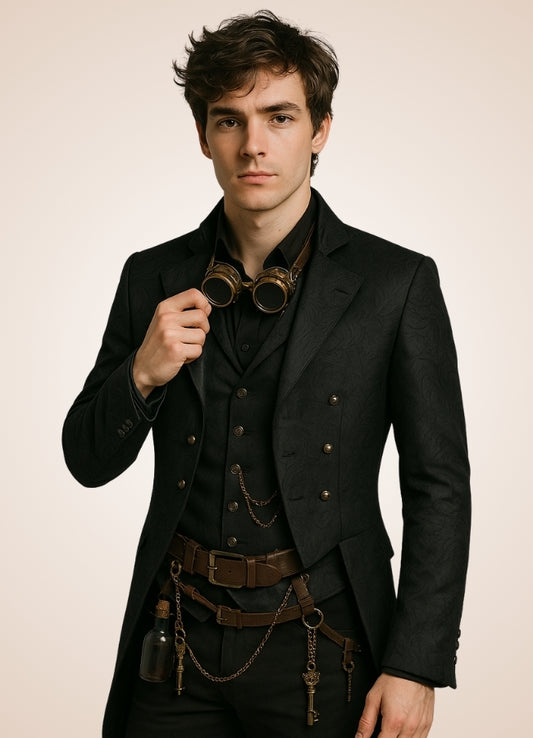 Women's Gothic Embroidered Velvet Tailcoat with Bell Sleeves