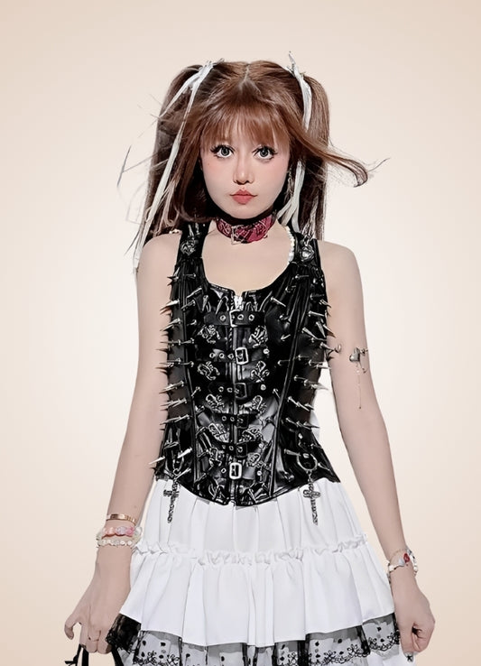 Steampunk Tank Top Denim Corset