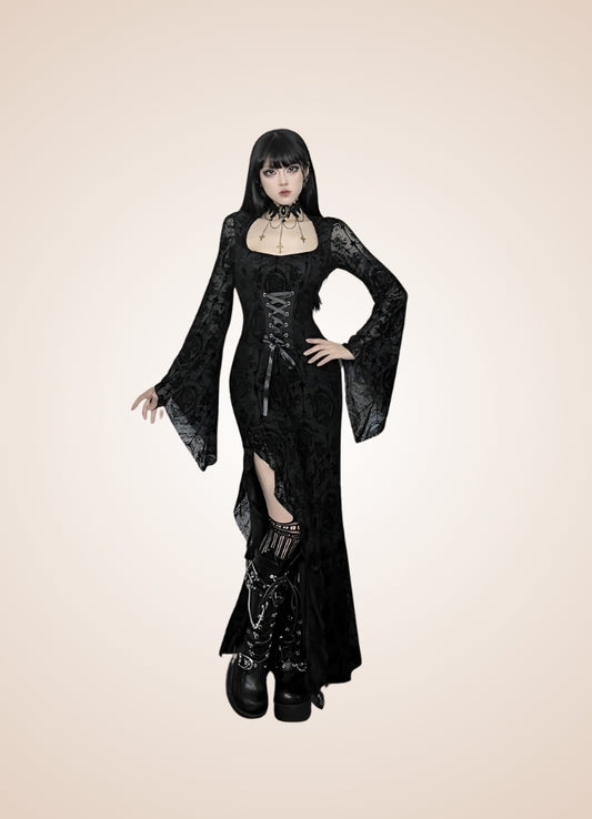 Black Steampunk Gothic Long Dress